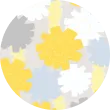 ピンポンマムは、海外で改良された洋菊です。和菊は半球状に咲きますが、ピンポンマムは茎の根元にまで花びらがあり、まん丸に咲きます。ドットのように配置しポップなイメージに仕上げました。